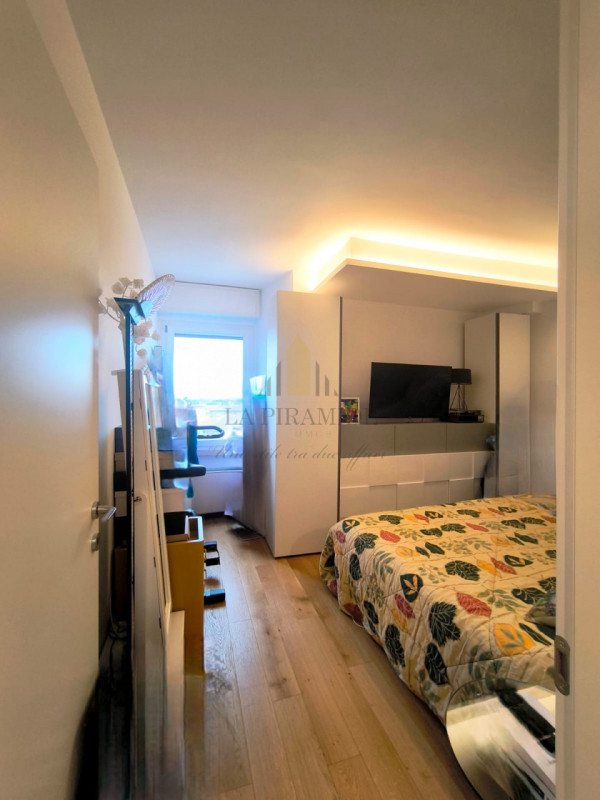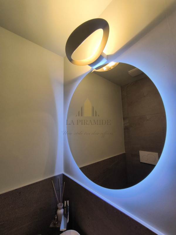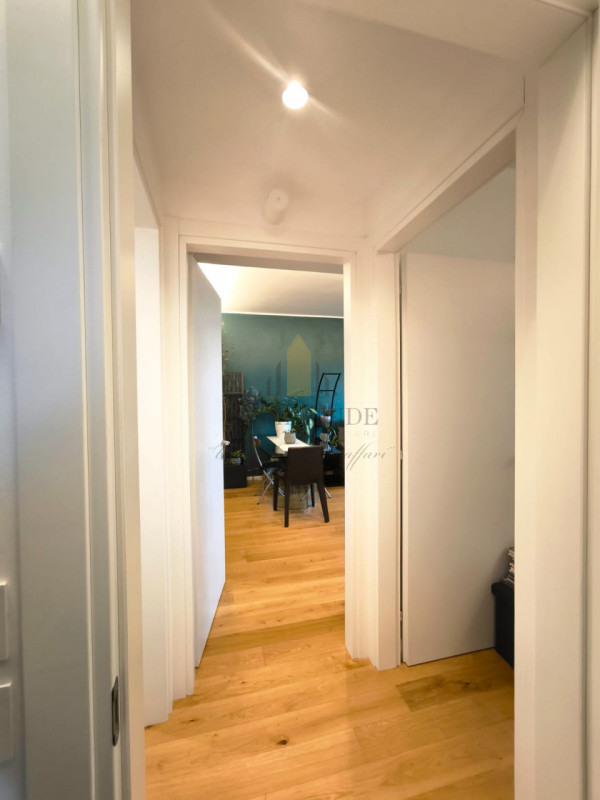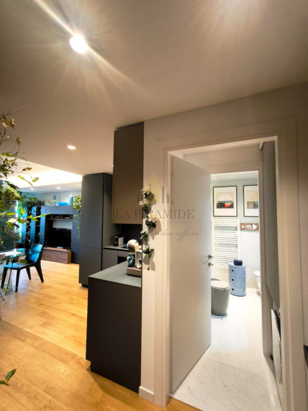 Finiture ricercate e di pregio. Pavimento in legno di rovere nella zona giorno e nelle camere da letto, bagni in marmo e gres.