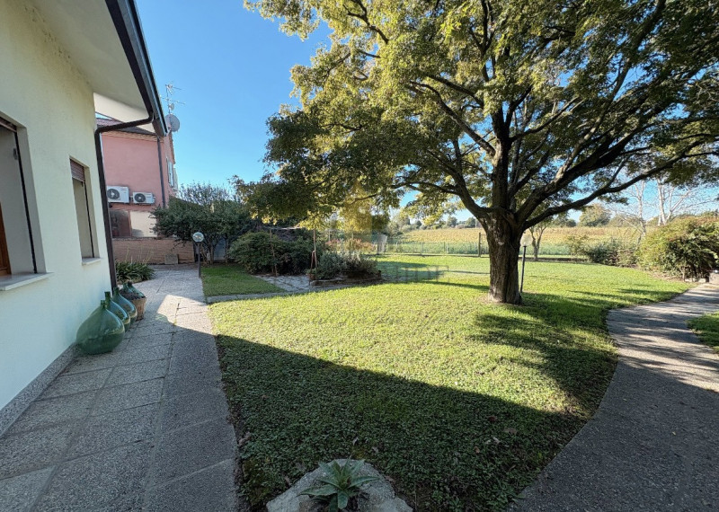 All’esterno, la casa dispone di un ampio giardino che circonda la proprietà su tre lati, offrendo spazi verdi riservati e fruibili.