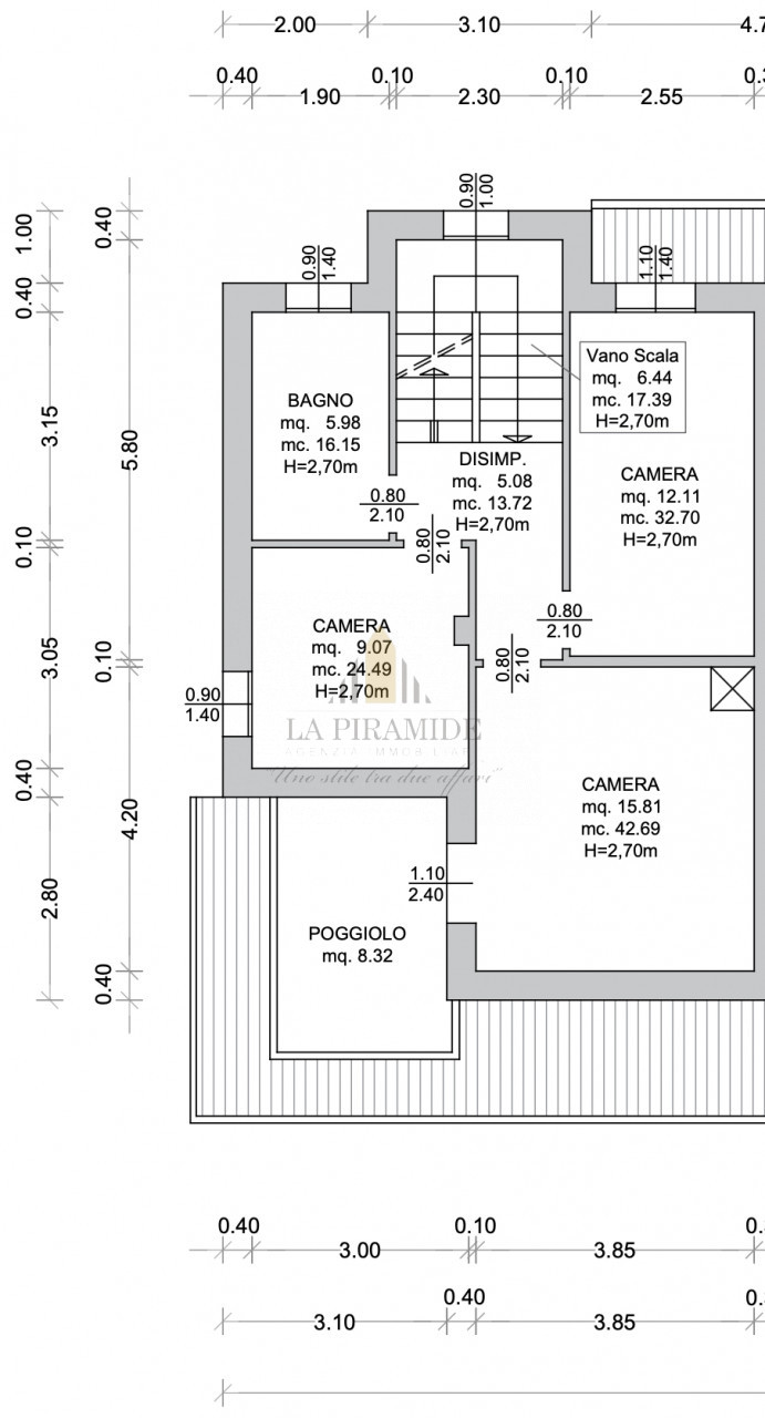 Salendo al primo piano, la zona notte è composta da tre camere da letto a scalare, secondo bagno finestrato e poggiolo.