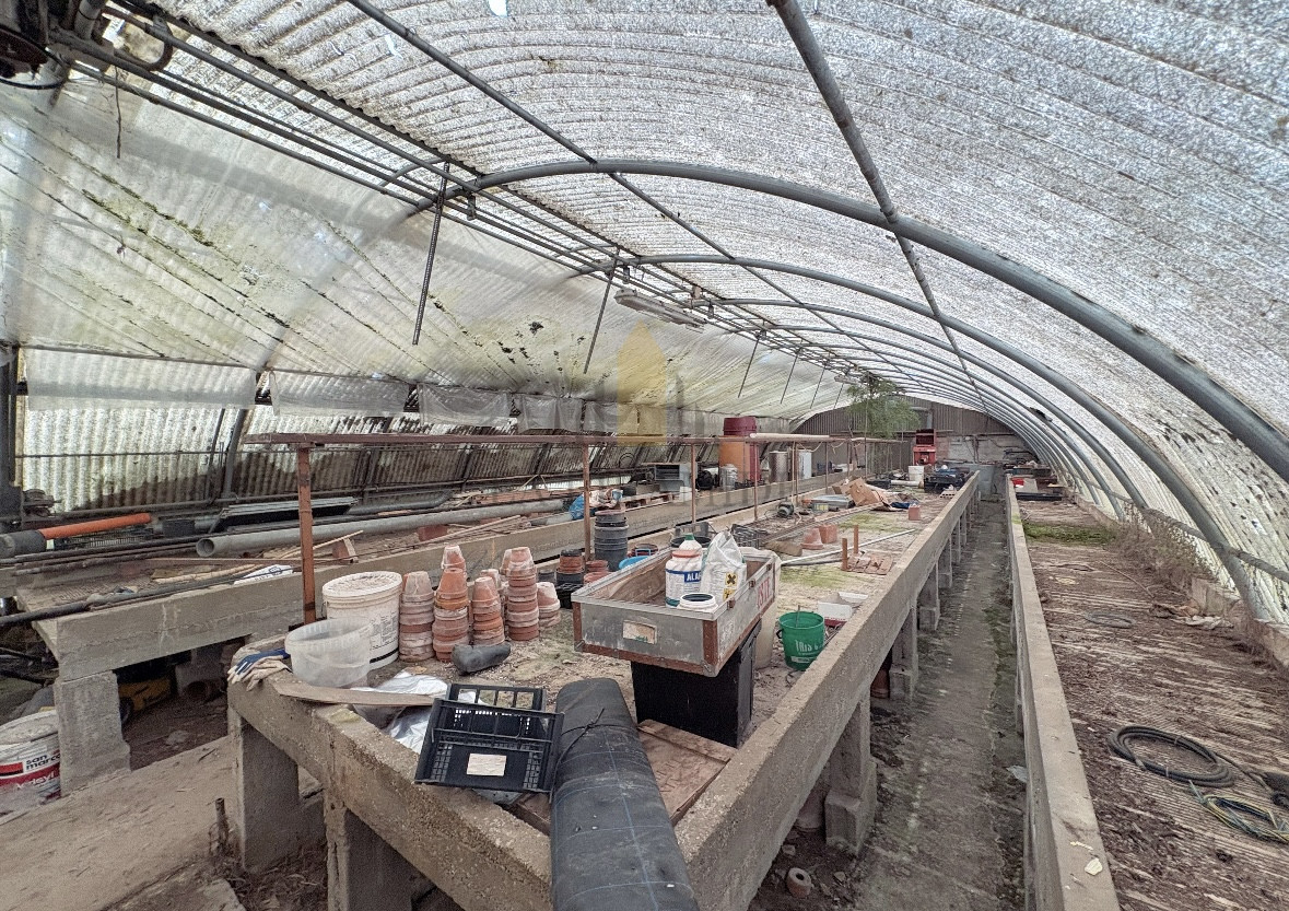 All’esterno la proprietà è completata da giardino su un lato e, sull’altro, da due grandi serre per una metratura totale di 700mq, che ampliano notevolmente la superficie coperta e offrono ulteriori possibilità di utilizzo o riconversione.