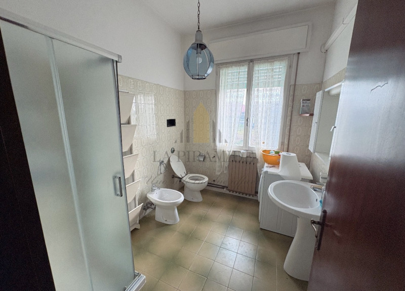Piano terra: ingresso su soggiorno, cucina separata, due stanze di generose dimensioni, bagno finestrato, oltre a una stanza accessoria comunicante con la parte esterna posteriore dell’abitazione, perfetta come lavanderia, studio o spazio multifunzionale.
