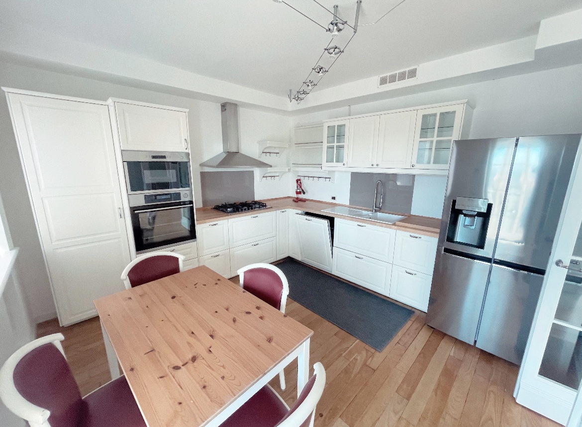 L'appartamento, spazioso e luminoso, è composta da ingresso sulla veranda che guarda la parte interna del fabbricato, zona giorno con cucina attrezzata, 4 camere matrimoniali e 2 moderni bagni .