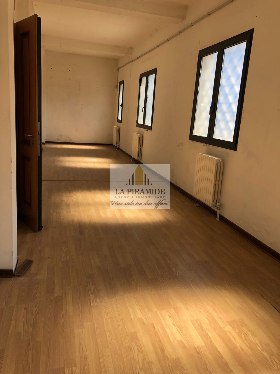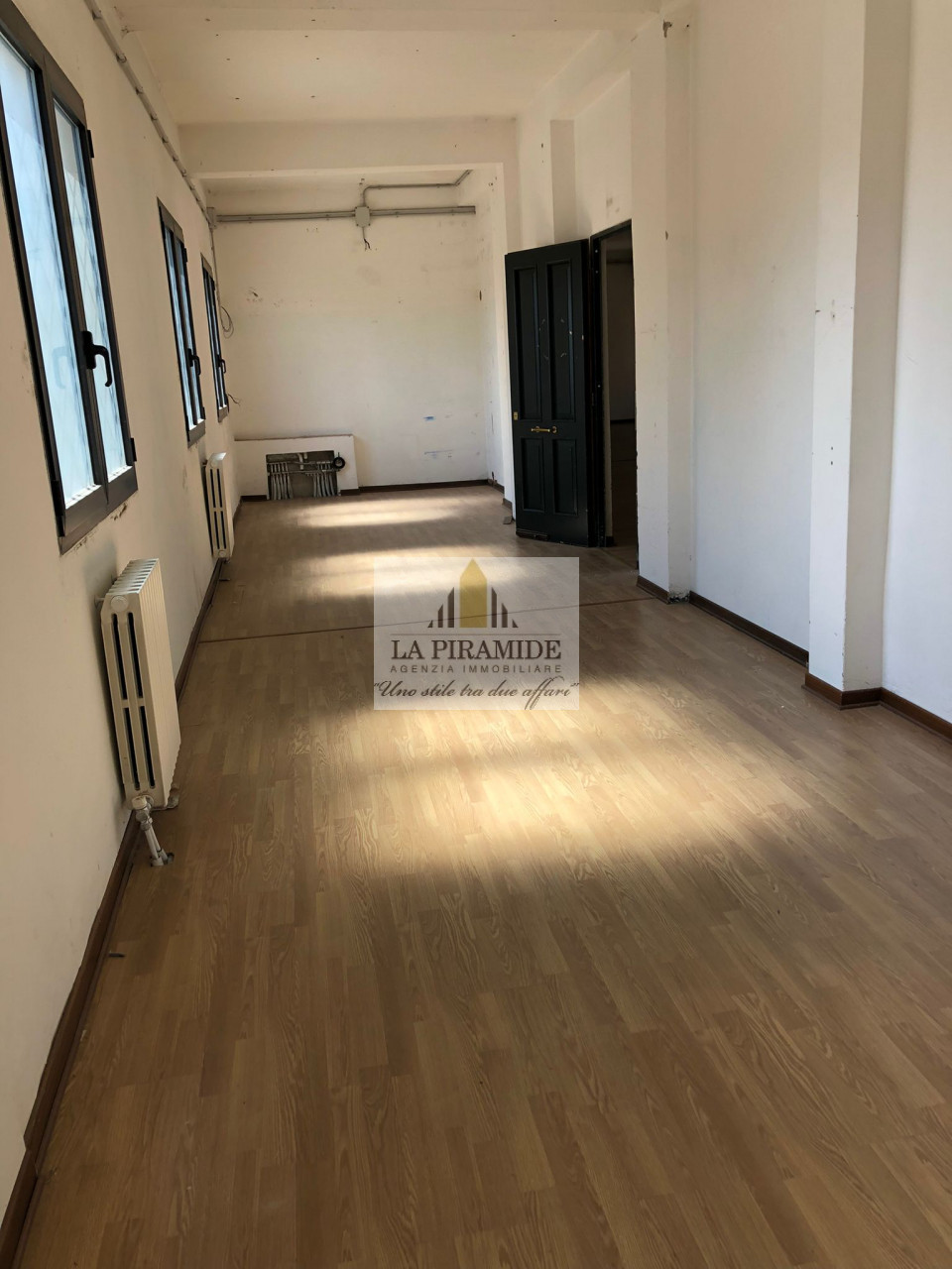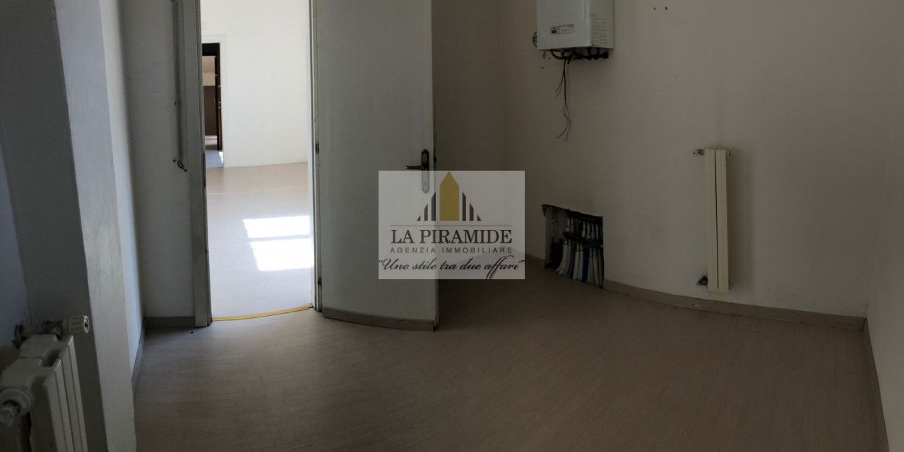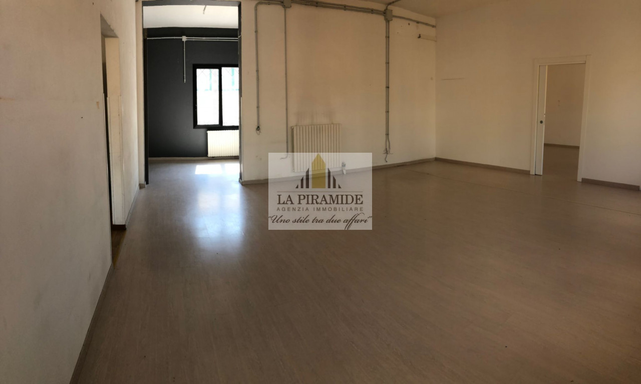 Composto da: ingresso, una grande stanza open space o la possibilità di predisporre quattro uffici, antibagno e due bagni finestrati.