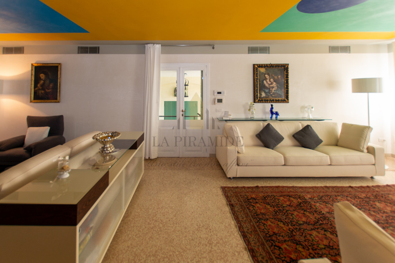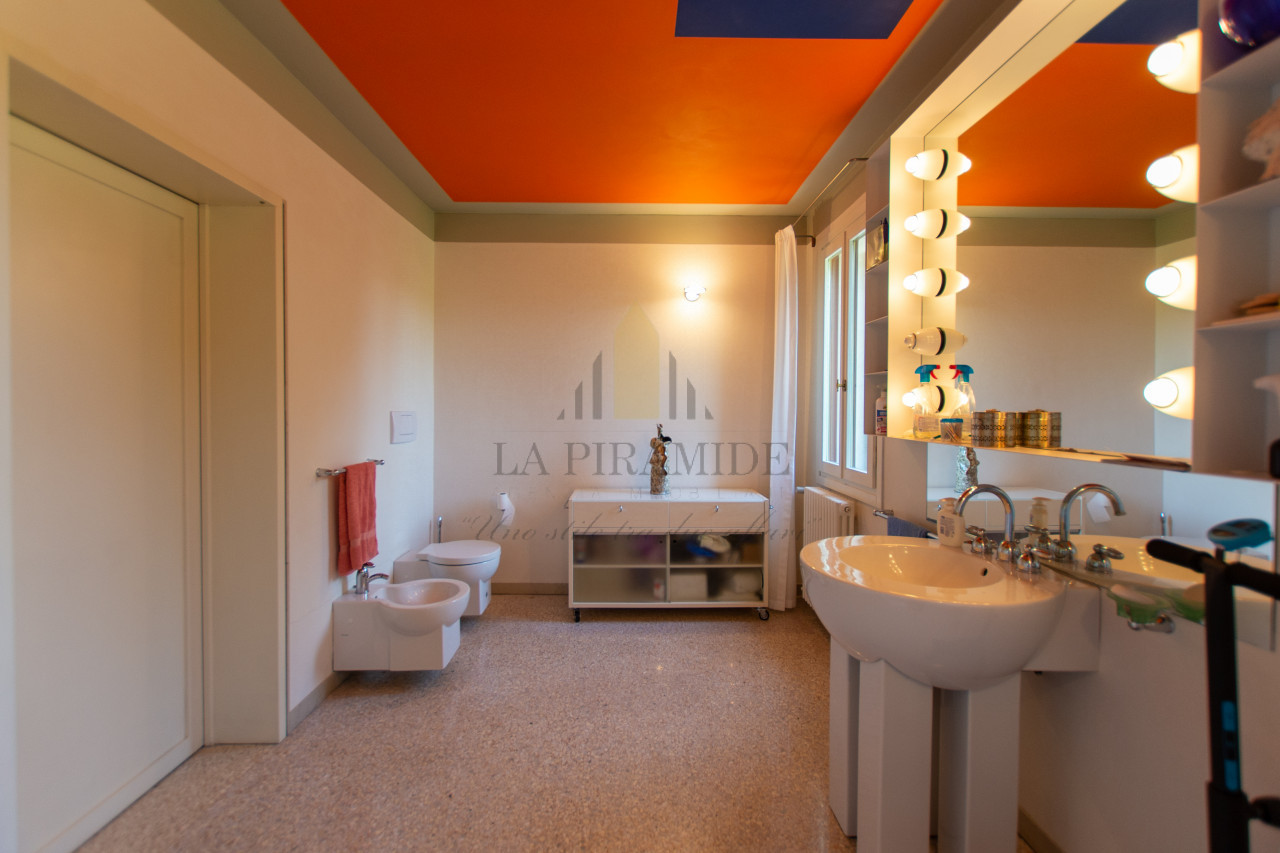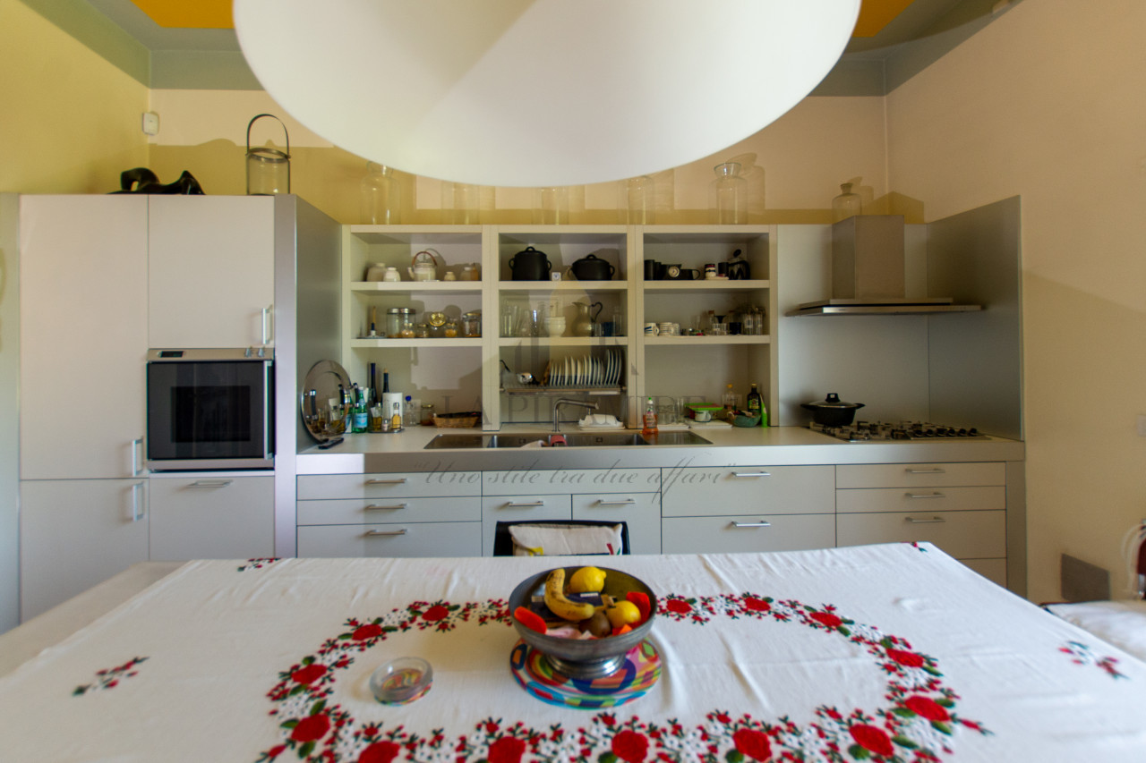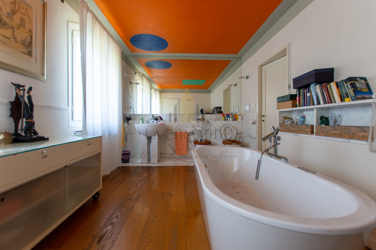Al piano terra trovano spazio una zona giorno luminosa, una sala da pranzo con camino monumentale, una cucina abitabile di ampie dimensioni e un piccolo studio con affaccio sul giardino.