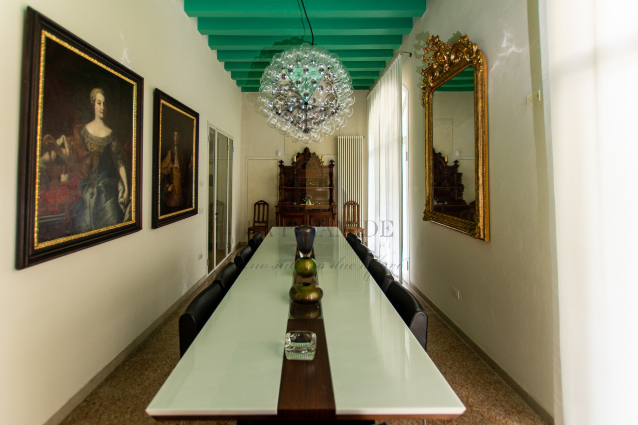L’ingresso principale, affacciato sul canale, introduce a un maestoso salone centrale con soffitti alti e travature originali, decorato con stucchi e pavimenti in terrazzo veneziano.