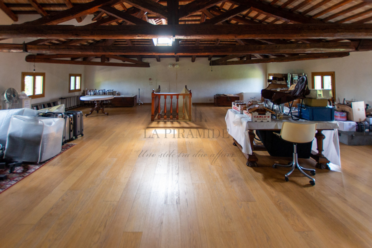 Sviluppata su circa 700 m² distribuiti su tre livelli: piano terra, piano nobile, mansarda abitabile, parco privato di oltre 4.000 m² di giardino all’italiana con alberi monumentali, vialetti, e ampi spazi per eventi all’aperto.